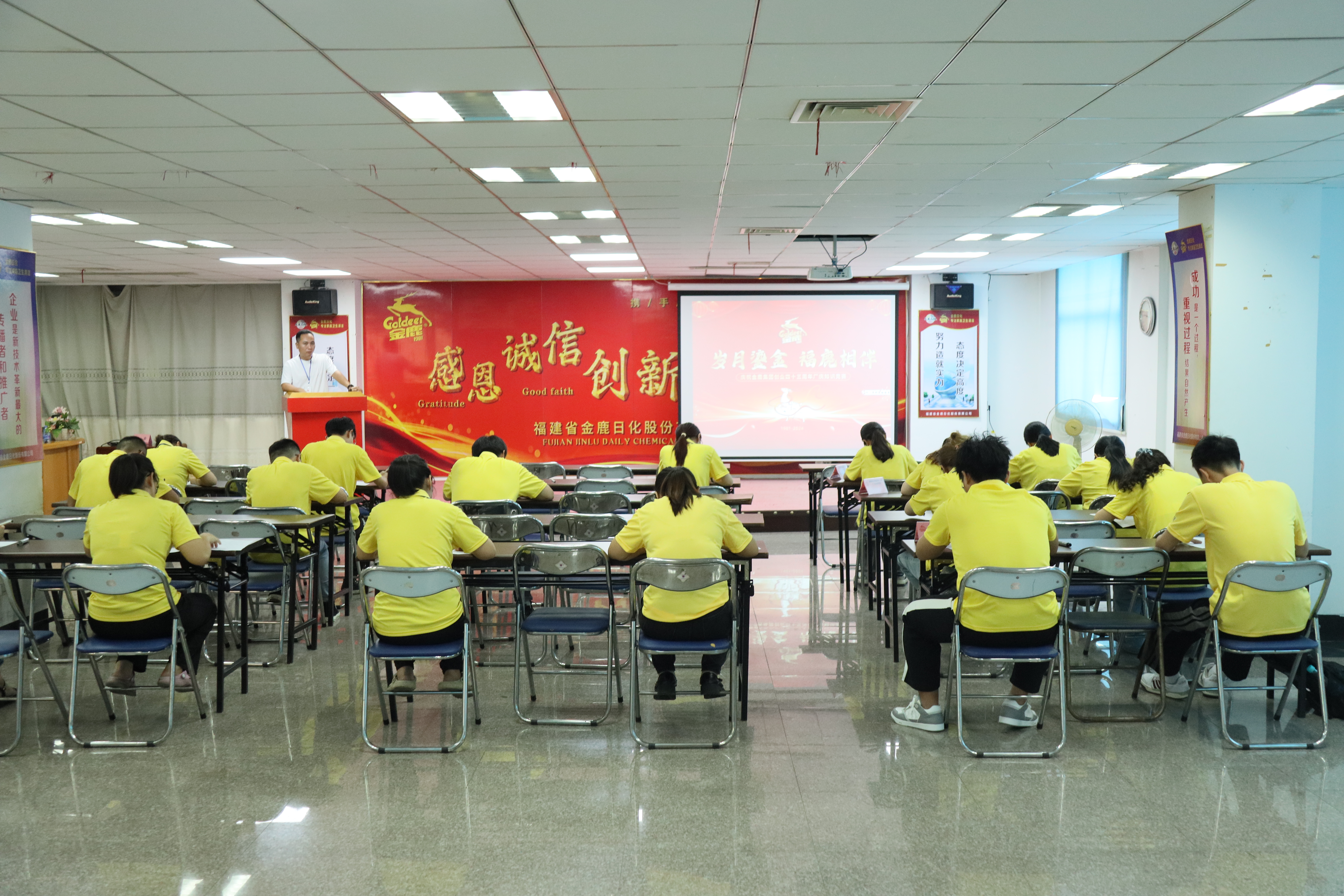 金鹿集團歷經風雨,拼搏奮進,于8月1日迎來了四十三周年的生日。為了激發(fā)員工的工作熱情,提升專業(yè)技能,增強團隊協(xié)作與創(chuàng)新思維,同時也為感恩全體金鹿人的辛勤付出,金鹿集團舉辦了“歲月鎏金·福鹿相伴”的廠慶系列活動,活動分為知識競賽、技能競賽及廠慶晚宴三個活動。
