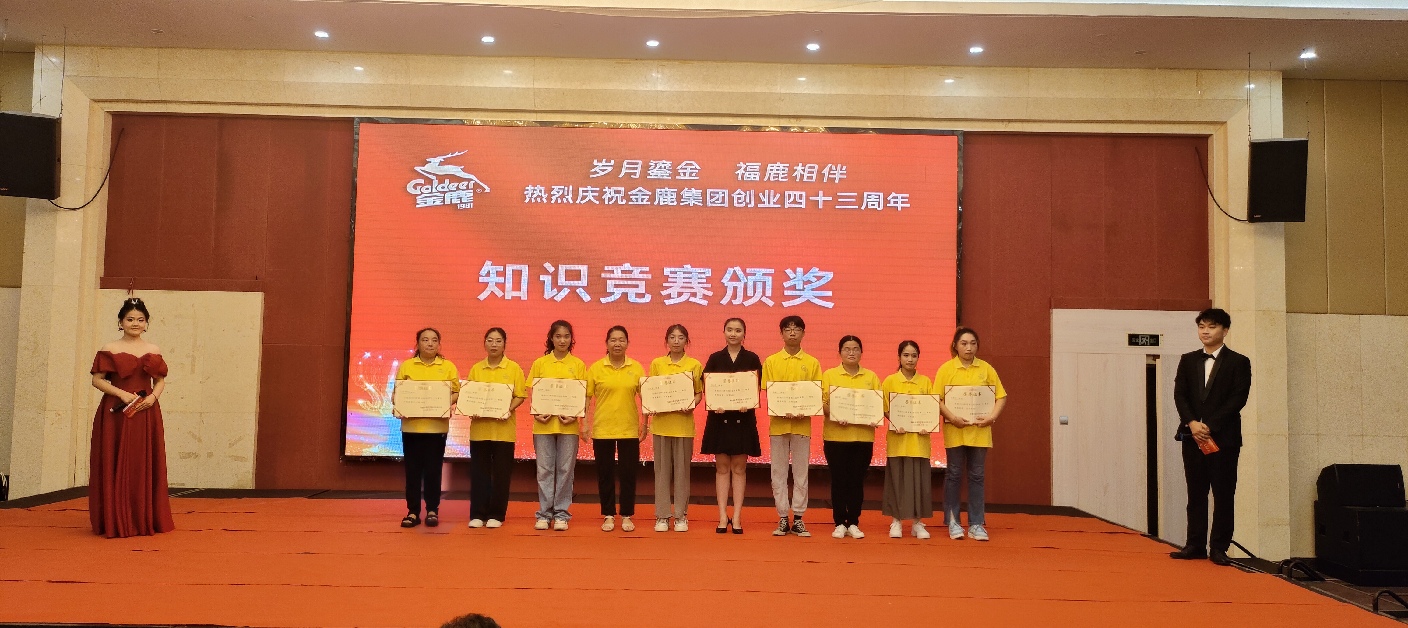 81日晚上,金鹿集團在金鹿大酒店十樓宴會廳舉行了廠慶晚宴活動。晚宴上,頒發(fā)知識競賽和技能競賽各個獎項,以表彰在活動中表現突出的員工和團隊。此外,晚宴上還呈現了精彩的文藝表演和幸運抽獎等環(huán)節(jié),讓員工在輕松愉快的氛圍中享受廠慶的喜悅。
